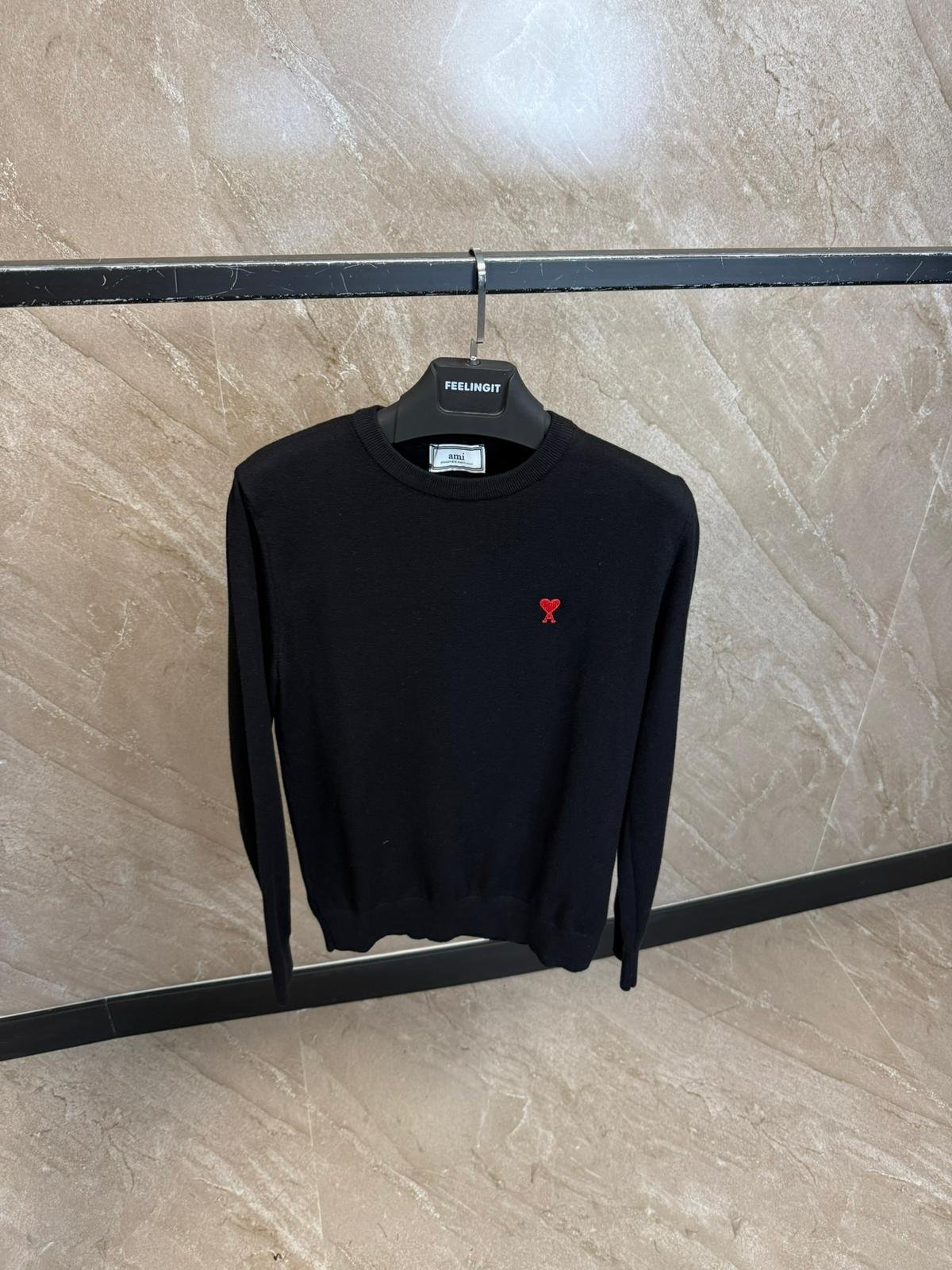 Ami Sweater Black, Red Logo