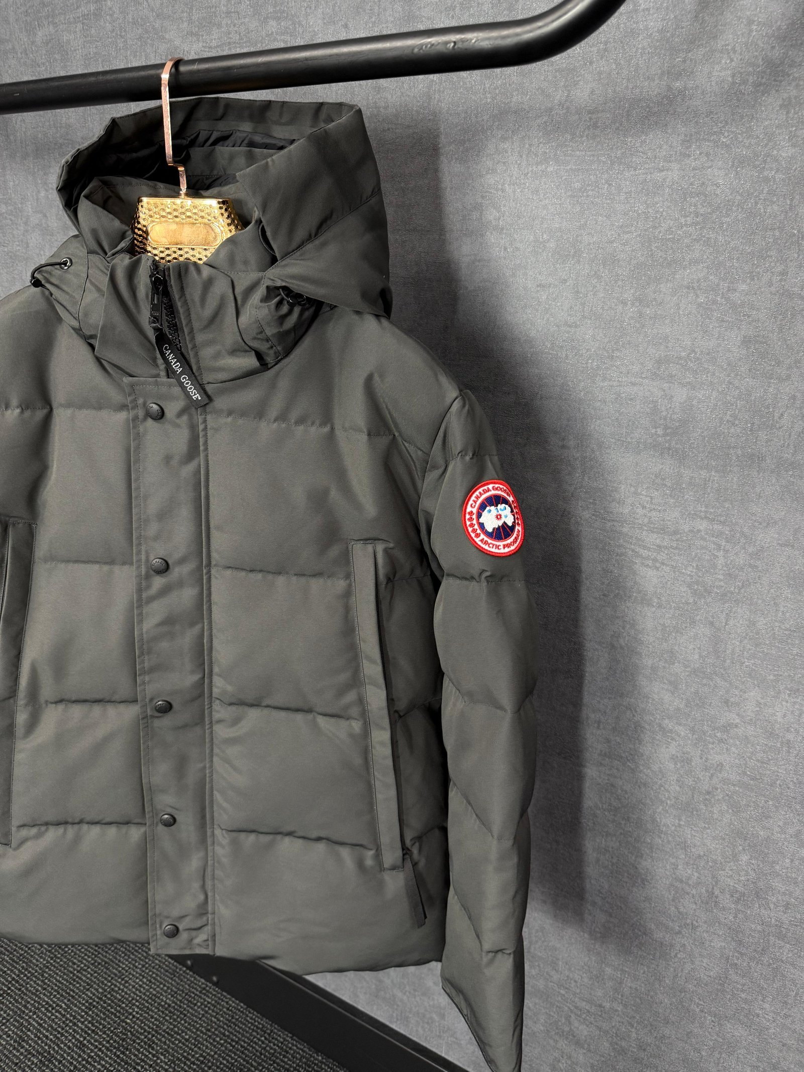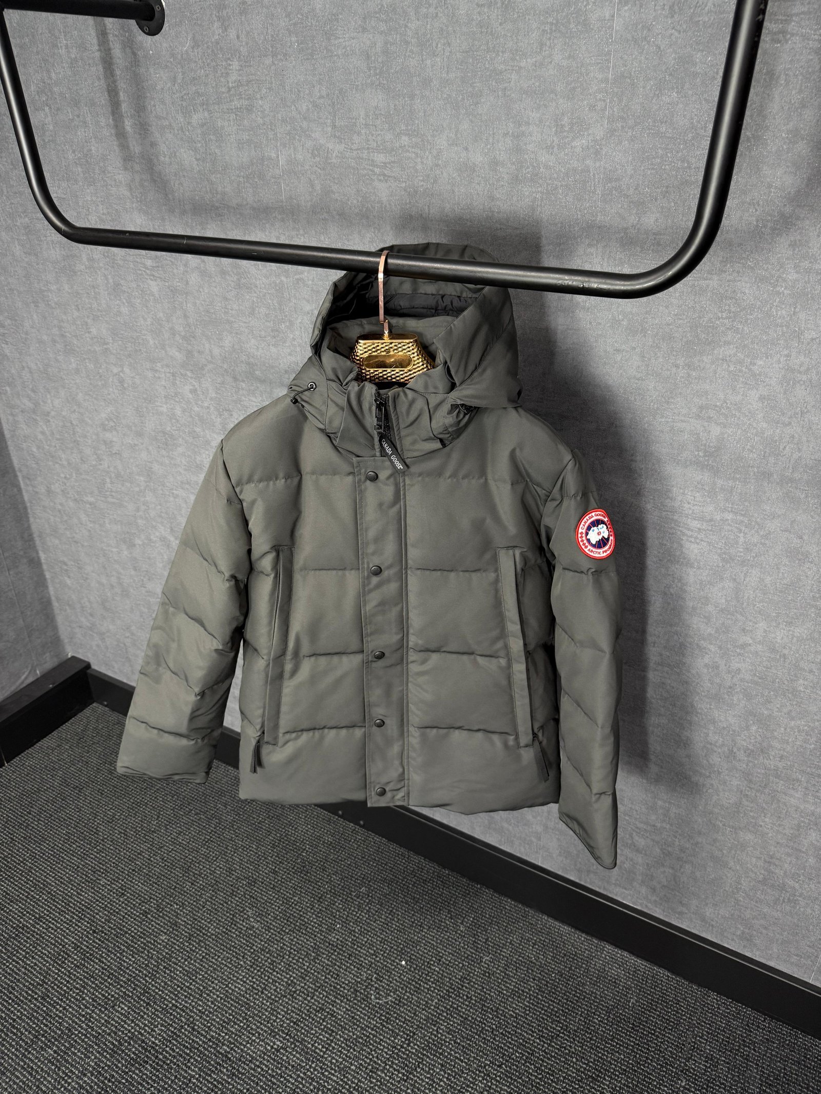 Canada Goose Wyndham Grey, Rode Logo High Quality aantal