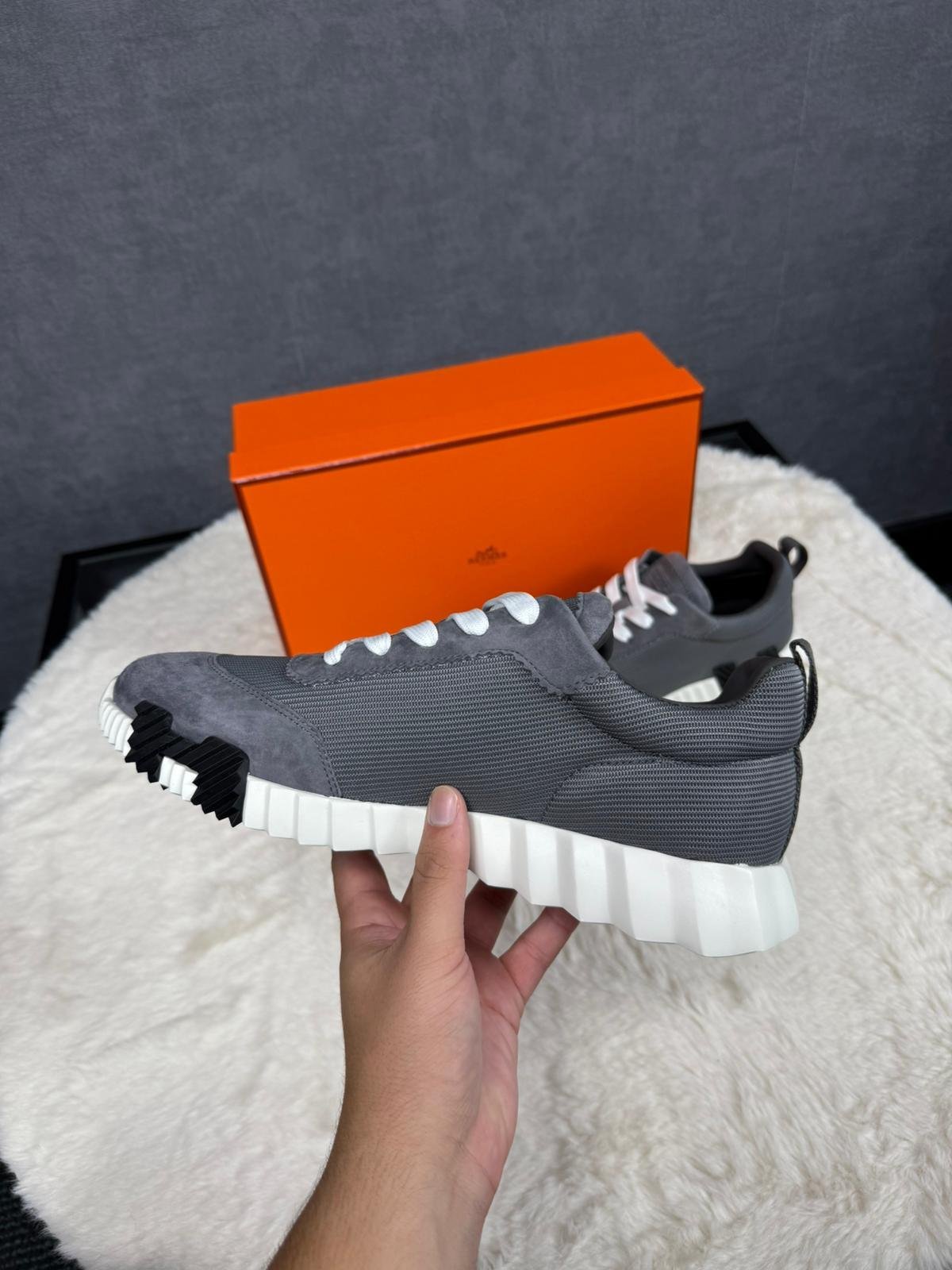 Hermes Bouncing Grey Suede Ribbels