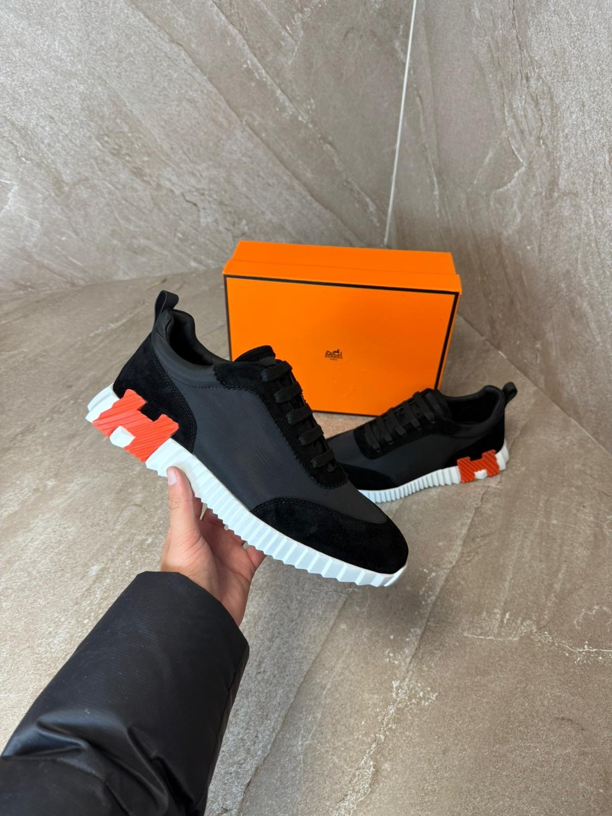 Hermes Bouncing Sneakers Black, Orange Logo